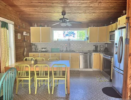 Enjoy easy living at 12 Ocean Bay Blvd! Beautiful 4 bedroom, 2 full bath home in prime mid-block location in the heart of Ocean Bay Park. Ideally situated just a 2-minute walk from the beach and a 2-minute walk to the ferry, this home is beach living at its best. The sunny, renovated kitchen features stainless steel appliances, quartz countertops, and a ceramic tile backsplash. If yellow cabinets aren't your vibe, the beautiful cabinetry can be painted the color of your choice. Both full bathrooms have also been completely renovated, or you have the option of using the outdoor shower. Ductless minisplit unit in the main living area will keep you cool and comfortable all summer long, and offers heating to allow use of the home deep into the Fall and early into the Spring seasons. Privacy abounds on the 50'x100' lot with lush greenery. All on one level, this home is truly low maintenance, with James Hardie cement siding, Trex decking, updated windows, and cedar paneled interiors. Affordable flood insurance only $1,859/year, low taxes only $4,753/year, and no HOA make this home a spectacular choice for your beach getaway or rental investment.